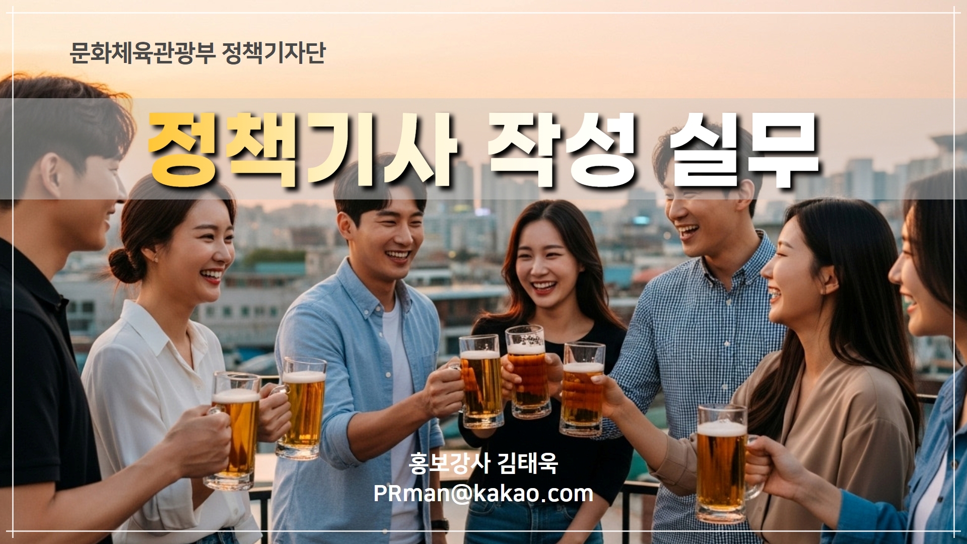 문화체육관광부(이하 문체부) 정책포털과에서 주관하는 "2025 대한민국 정책기자단 간담회"에서 <정책기사 작성 실무> 주제로 특강을 했다. 문체부 정책기자단과 정책포털과 직원 30여 명 대상으로 정책브리핑 정책기사 작성법 강의를 했다. 계기성에 정책을 더해 정책기사 개념과 접근법, 표현법, AI 활용법 등을 알려드렸다.
