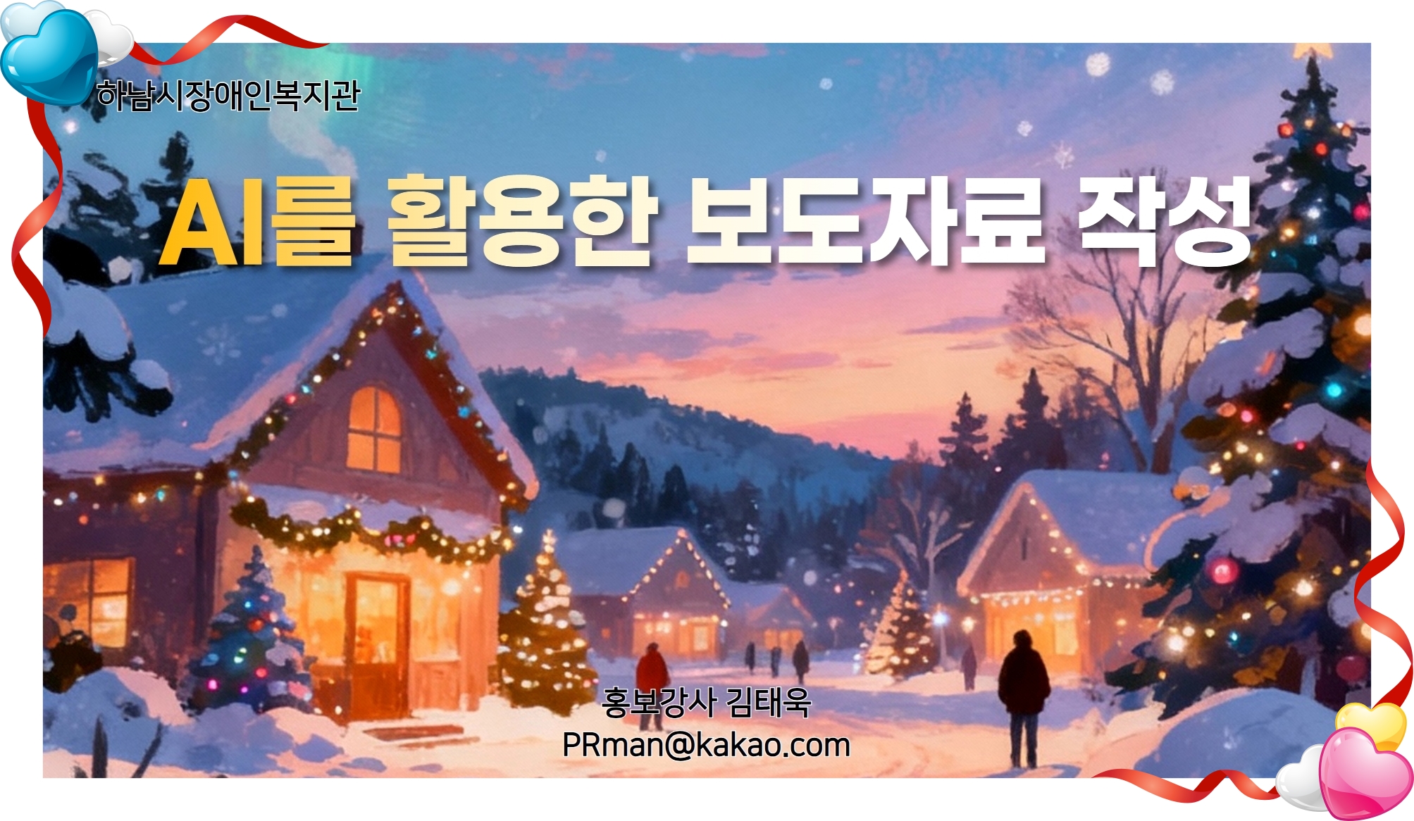 성탄절 기분을 좀 냈다. 하남시장애인복지관 강의인데, 강의교안 표지를 성탄절 분위기로 만들었다.