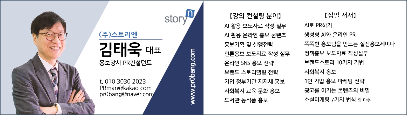| 한국생산성본부 KPC, <언론홍보 보도자료 작성(ChatGPT 활용)> 7시간 과정, 강의 및 실습 진행 (1) | 2026.01.23 |
