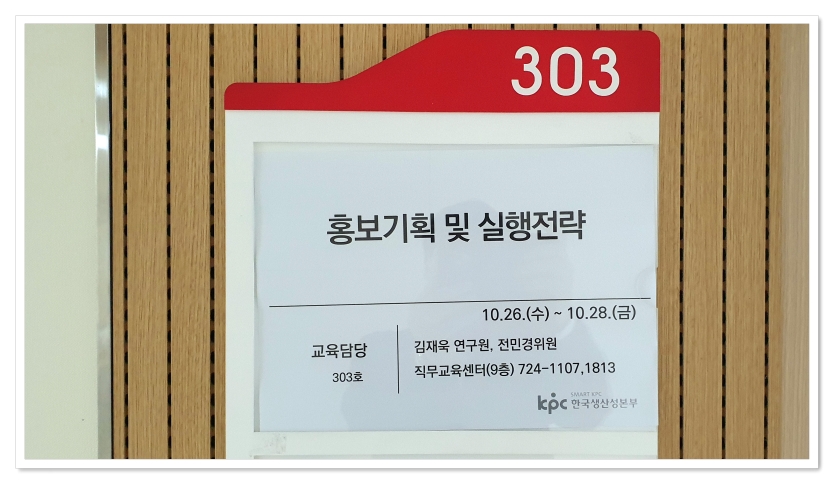 한국생산성본부 KPC에서 12년째 연 4~6회 정도 진행하는 홍보 강의다. 제목은 으로 3일 21시간 강의 중, 2일 14시간을 맡아서 강의한다. 이 과정은 연초에는 수강생이 7~15명 정도이데, 하반기 들고 연말이 다가오면 점점 늘어 20명이 넘기도 한다. 이번에는 공공기관, 기업 홍보 관련자들, 딱 20명이다. 코로나 이후, 일부는 온라인으로 참여해, 온오프 동시에 한다. 이번엔 3명이 온라인 줌으로 수강 중이다. 1일차는 홍보이해, 홍보전략, 언론홍보를 강의하고, 2일차는 위기관리커뮤니케이션, 스토리텔링홍보, 온라인SNS홍보를 강의한다. 내가 맡은 이틀 커리큘럼은 다음과 같다. I. 홍보의 이해 및 언론홍보 전략 - 홍보(PR)의 이해 및 공중별, 이슈별 범위 - 홍보 전략 : 목표공중전략, 메시지..